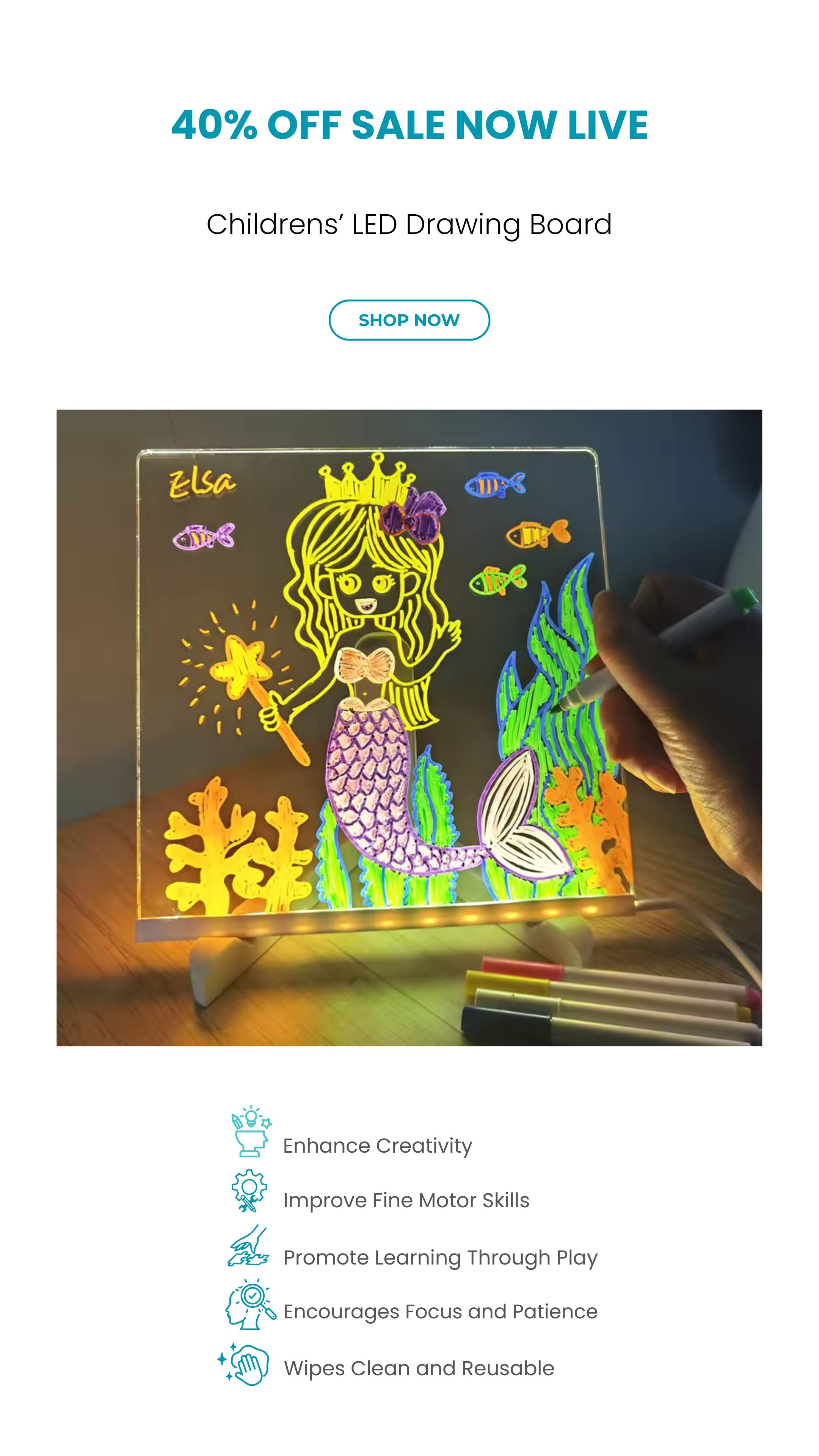 See their basic drawings come alive with dazzling LED illumination, transforming into radiant works of art. This engaging, hands-on activity sparks imagination, allowing young creators to explore, express, and enhance their talents, all while enjoying endless fun.